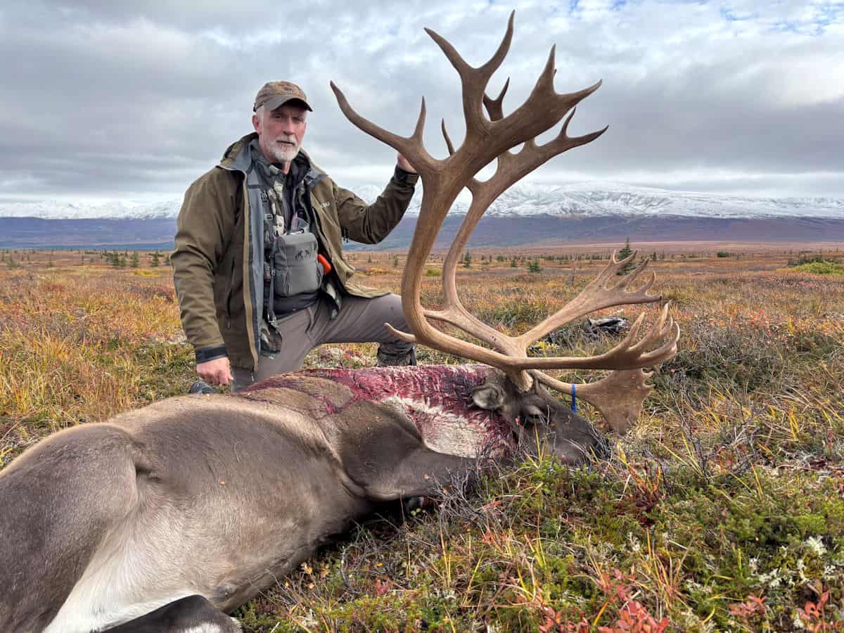 I wanted to thank Mike and his team for a great hunt! Such an adventure! My guide Dayton was great to hunt with and very knowledgeable about the area. Mikes hunting area is absolutely beautiful! We had great weather which allowed some incredible pictures of Denali and the surrounding mountains. Unfortunately, I was not successful on the moose portion of my hunt but I was successful hunting for Caribou and Grizzly! The caribou was taken on the second day in full velvet. We watched him the day before running all over the mountain and we were able to make a successful stock the next morning. The grizzly was taken on the 9th day after a lot of hiking! Such a fun experience. I will definitely be back for another chance at a moose!